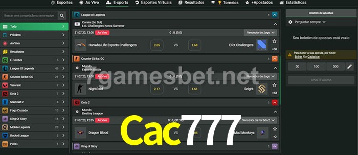A aposta Cac777 oferece aos jogadores a experiência mais conveniente de apostas em eSports!